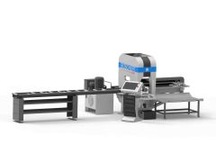 The Boschert CU Profi copper bar processing machine is a powerful solution for efficient processing of copper, aluminum and steel bars. The CU Profi can be equipped with five to nine tool stations and accommodates bars up to 20-feet in length, 9-inches wide and 1/2 -inch thick. Its CNC-controlled punching heads use standard thick turret “B” station tools (up to 1-1/2” diameter), with an optional “C” station punch in place of two “B” stations. Hydraulic material clamping in Y-axis on both sides of punch head ensures straight parts. This design allows for leadscrew threading for in-process tapping of parts. Part-marking options include ink jet or dot-peen marking.